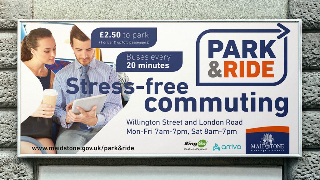 Maidstone Borough Council gave their Park & Ride service an overhaul, and I was tasked with creating a campaign to relay the new service information to local residents and businesses, across billboards, bus rears, bus stations, leaflets and social media. I took a three-stage approach of preparation, information and aspiration to give the campaign an easy-to-digest and accessible feel.