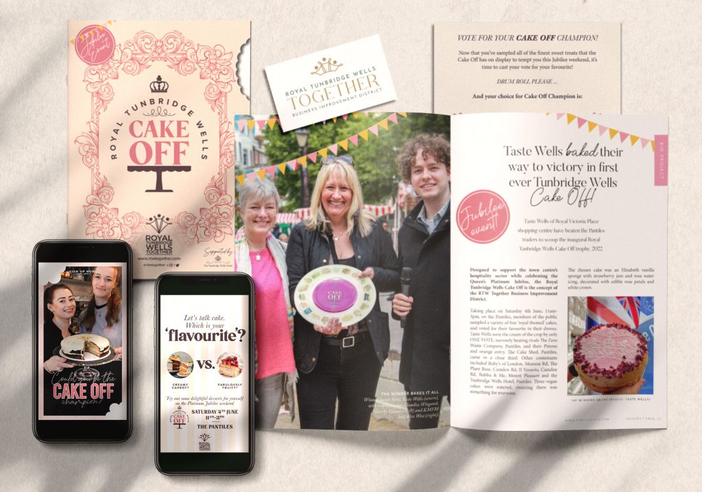Several projects for Royal Tunbridge Wells Together Business Improvement District, involving creative strategy, brand identity, print brochures, signs and leaflets, and social media content.